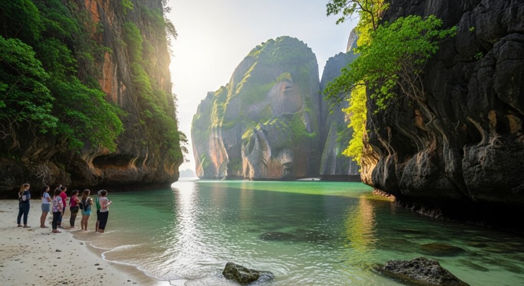 Wrapped between high cliffs and green sea, Maya Bay seems tucked away by fate. Beauty like this still pulls travelers here, from distant lands.