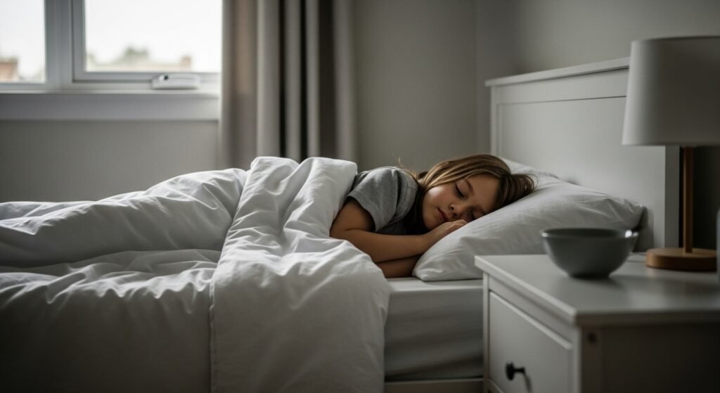 A quiet, cozy room makes a big difference. Soft lighting, comfortable bedding, and a familiar setup help kids feel secure. Keeping the bedroom for sleep rather than play also strengthens sleep cues.