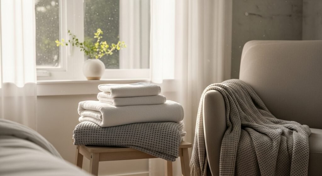 Cozy together when clothes match – like fleece robes or sweatpants that blend quietly into bedtime routines. Plush joggers, an oversized hoodie, or warm PJs create opportunities for quiet moments together. Pick what they like, even small shades of purple or muted blue.
