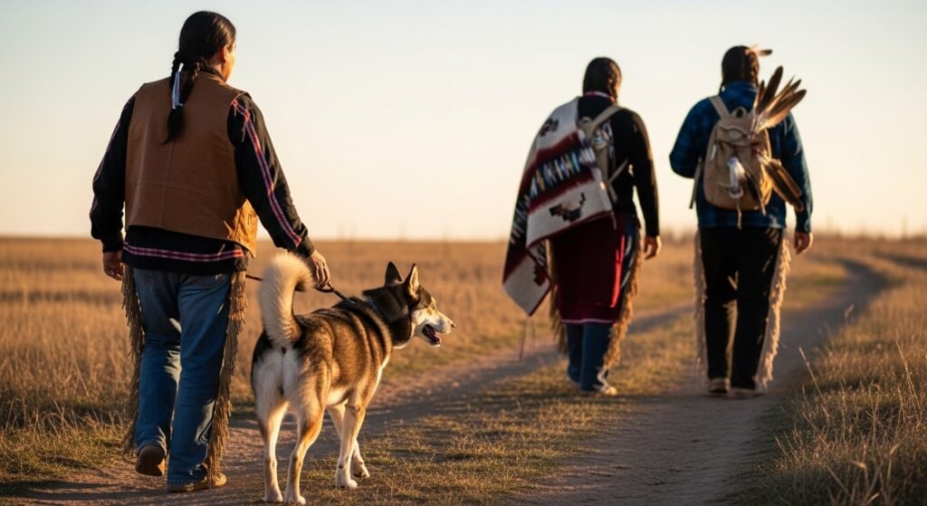 Most Native American groups were in intimate contact with dogs. They can assist in travelling or security, but also in everyday life. There are many stories and traditions that show that dogs served as helpers and companions and were in mutual dependence instead of being owned.