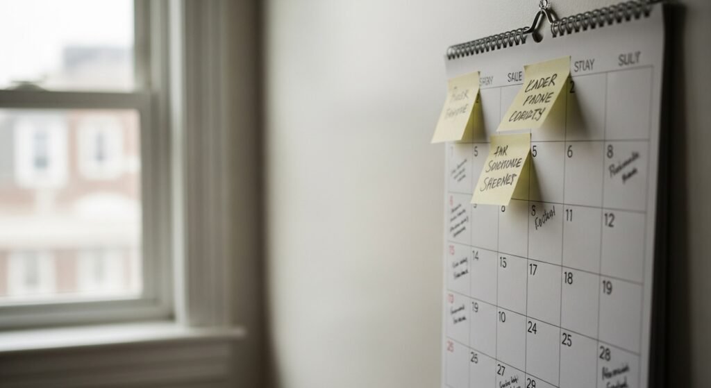 A corner desk holds an old grid calendar, pages cracked from use, where Mom once blocked vacation time. Appointments were scrawled in red ink and shared at dinner every night. Back then, one schedule ruled the household. These days, most people keep their plans locked behind phone screens.