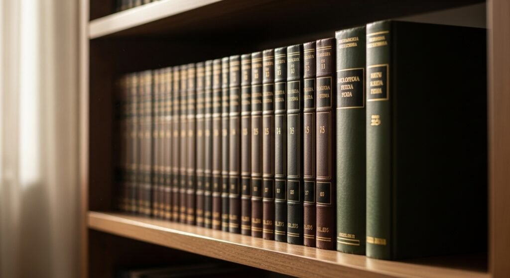 Encyclopedias on a Living Room Shelf