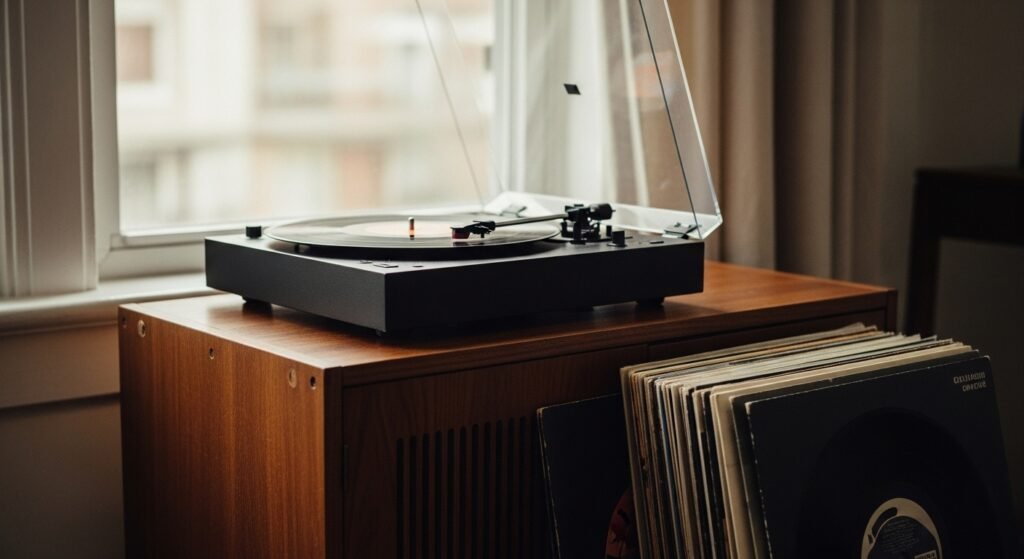 Record players filled many houses, wood cabinets packed with spinning discs. Back then, people listened together in kitchens and hallways, without screens in pockets. Though vinyl now finds some fans, it does not live in most homes today.