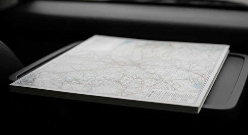 Folding road guides once filled backseats, sometimes replaced by bulky atlases. Being unsure where to go actually added fun. Now screens glow inside windshields, pushing real paper maps into storage silence.
