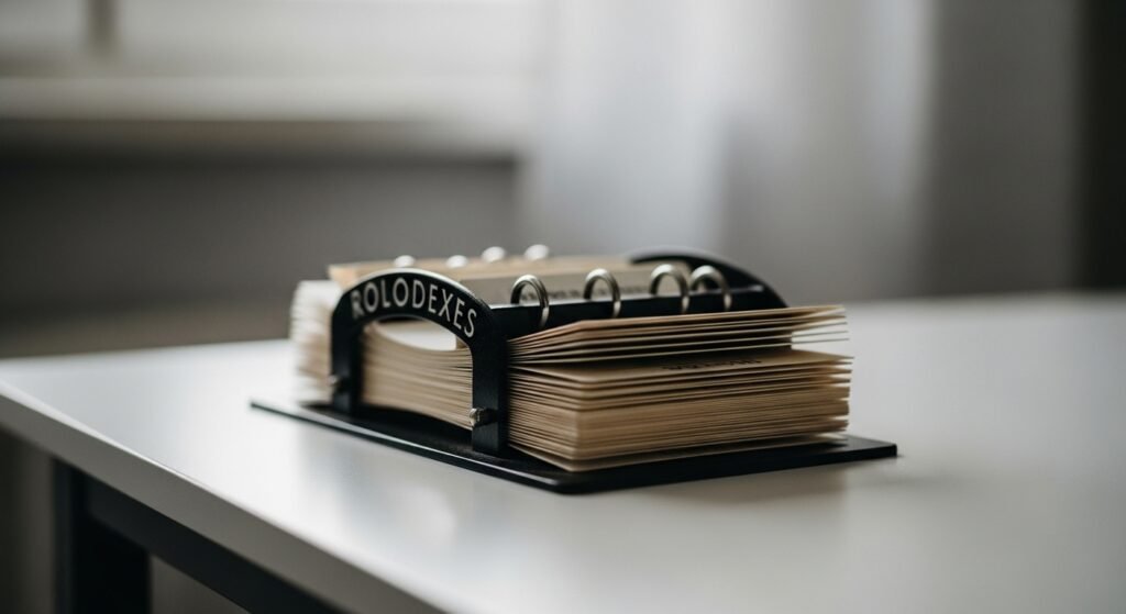 By the desk, under a lamp, card trays neatly listed coworkers and neighbors for after-hours help. You could find them in the kitchen too, tucked beside jars or magnets. Most people ignore them now since phone apps do the same job more efficiently and don’t occupy counter space.
